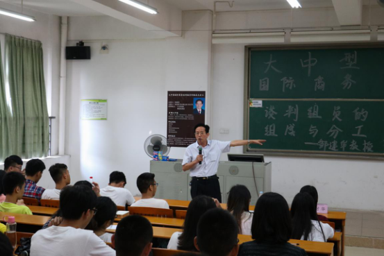 我院经贸系经济学专业首席教授、中山大学岭南学院博导邹建华教授作《大中型国际商务谈判组员的组成与分工》主题报告