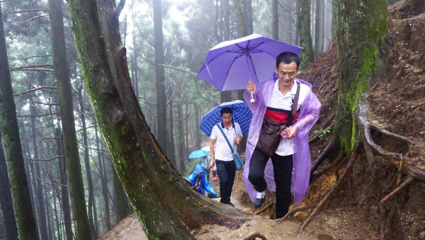 体验式教学:学员们冒雨重走毛泽东朱德红军挑粮小道,体验革命战士的艰辛