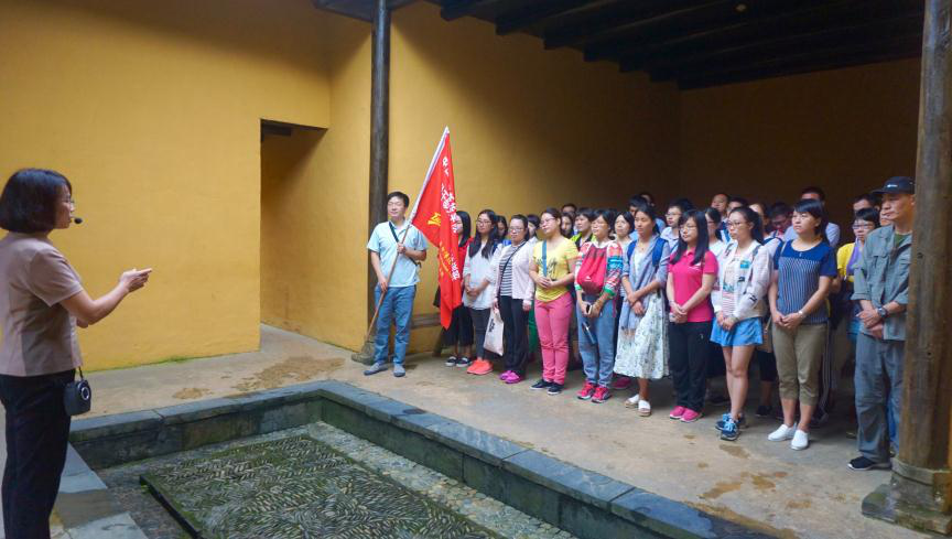 现场教学:参观大井朱毛旧居、小井红军医院,全体学员认真听讲
