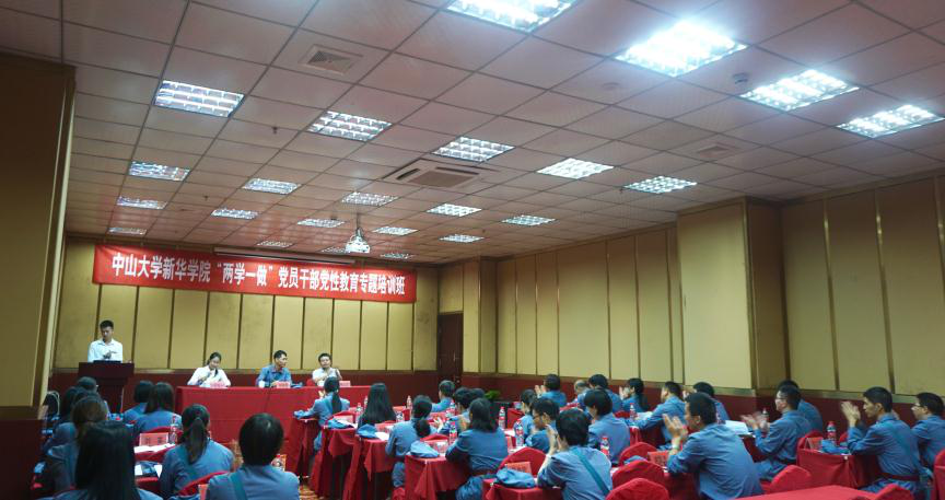 8月26日晚,中山大学新华学院“两学一做”党员干部党性教育专题培训班在井冈山革命传统教育研究院顺利开班。本期培训班负责人、学生工作部部长林秋贵同志与井冈山革命传统教育研究院副院长郝立志同志共同向本期学员代表授班旗、颁发红军帽,热烈祝贺圆满开班。