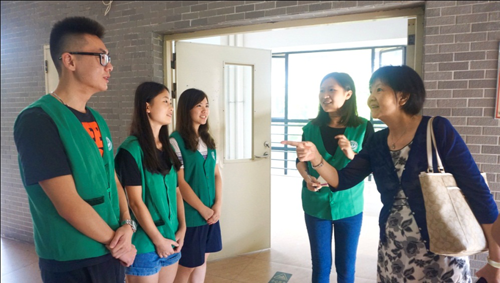 周云书记(右一)向学生会纪检部同学了解学生课堂纪律情况,得悉课堂纪律情况良好,她称赞同学们认真的工作态度和学生自我管理工作开展得有序规范。