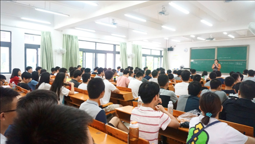 信息科学系主任衣杨教授开讲新学期第一课,同学们认真听课,座无虚席。