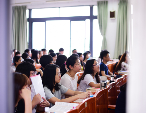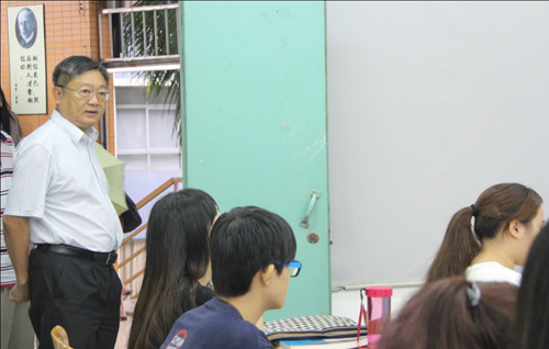 王庭槐院长巡查新学期第一天的教学工作,驻足在教室门口听课。