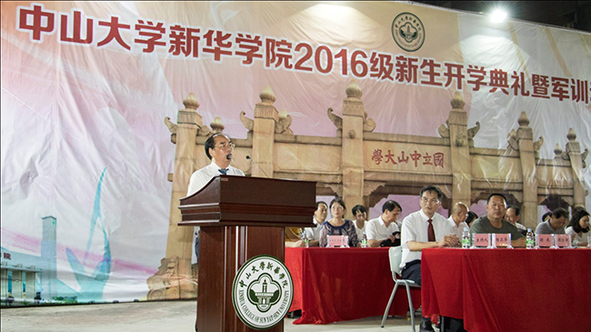 9月14日,中山大学新华学院2016级新生开学典礼暨军训动员大会分别在广州校区和东莞校区举行,5813名新生参加典礼。