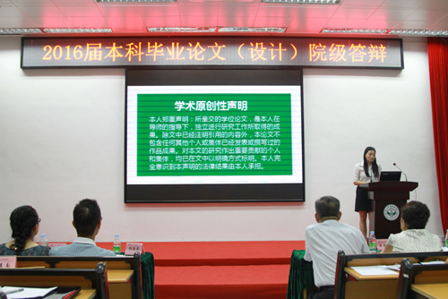 6月14日,由教务部组织的2016届本科毕业论文(设计)院级答辩会在广州校区和东莞校区同时举行。学院领导、教学督导、系主任、学系论文领导小组成员、指导教师、院外特聘教授参加。