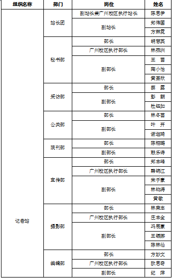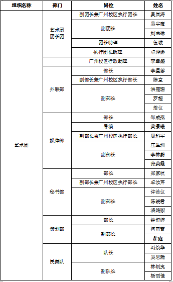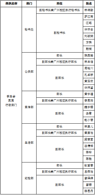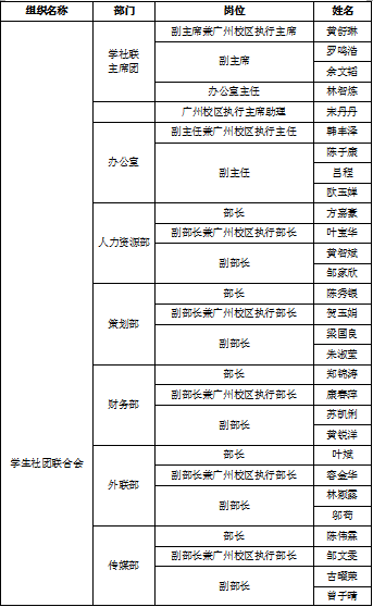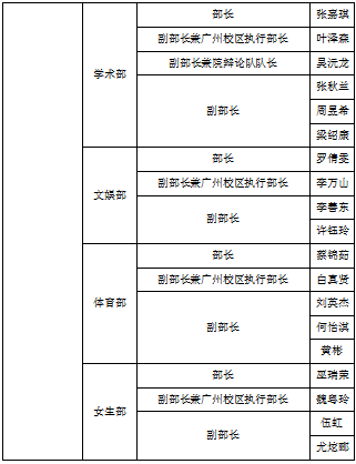 附:中山大学新华学院学生会第九届第二任学生干部名单