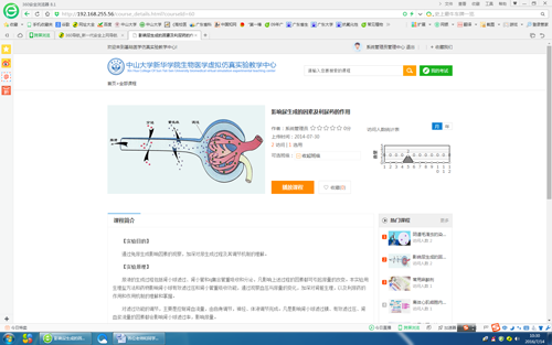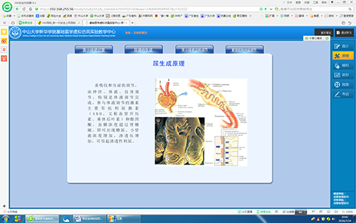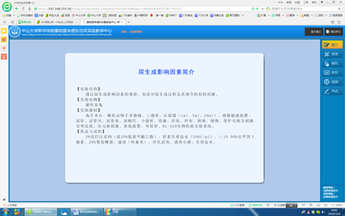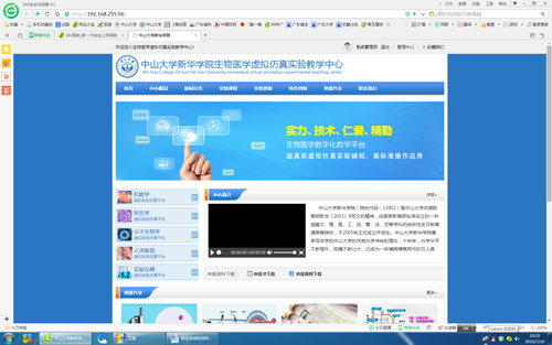 在学院领导和多部门的支持与推动下,“中山大学新华学院生物医学虚拟仿真实验教学中心”网络平台已建成(网址:http://192.168.255.56),并且开始试运行。网站现在能提供的教学资源有:机能学实验59个,形态学17个,分子生物学17个,实验仪器33个,实验动物11个,人体实验室35个,PBL教学3个,人体解剖学5个,科研实验视频5个,展示课件9个。据该实验室负责人介绍,希望该平台的上线运行、能在学院的基础医学实验教学中发挥重要作用。新华的师生可以在暑期备课和和学习时使用该平台,如果在使用中有问题,可联系王老师(QQ:602199530),刘老师(QQ:785547859),他们将会提供服务和帮助;如发现实验课件有错漏,联系他们提出修改意见。