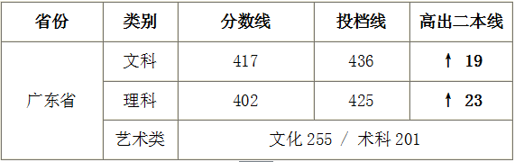 我院2016年广东省录取分数线