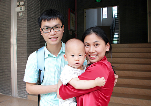参赛选手带着不足一岁的宝宝和丈夫前来助阵