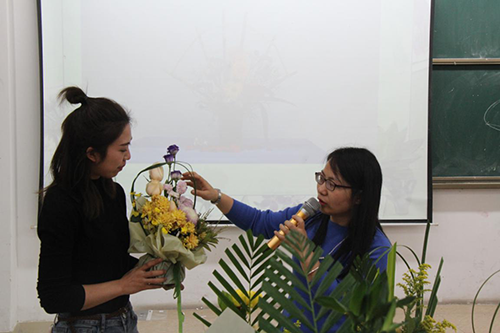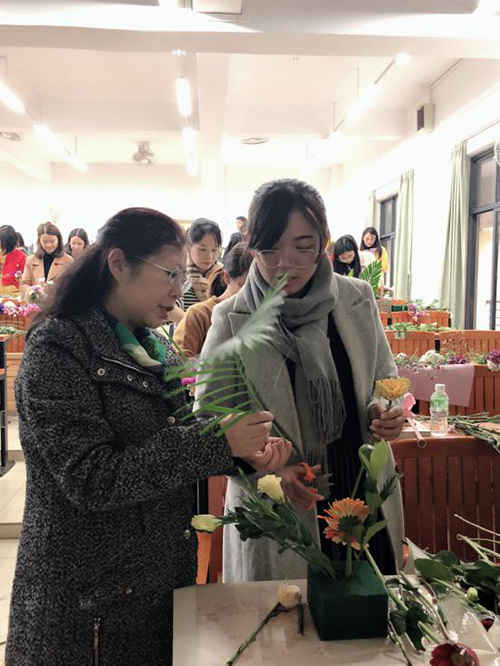 活动伊始,主讲教师徐婧用生动有趣的教学方式为古天乐代言太阳集团网址女教职工讲解插花艺术。徐婧老师系统详细介绍了东方式插花、西方式插花、现代式插花、抽象式插花,并耐心地对首次参与插花活动的女教职工进行现场指导。