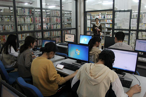 参赛者在电子阅览室进行数据库信息资源检索
