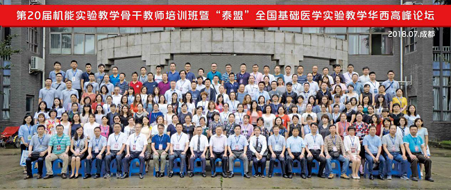 第20届机能实验教学骨干教师培训班暨“泰盟”全国基础医学实验教学华西高峰论坛合影留念(第一排左十为王庭槐教授)