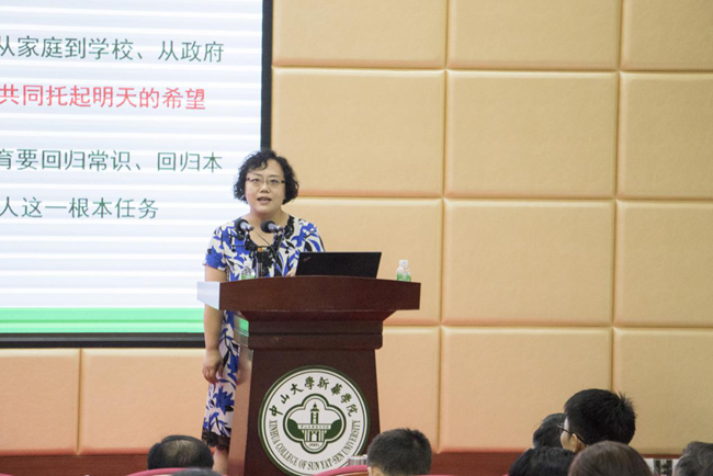 “特色是什么?”王庭槐从“管理学、经济学、医学等专业特色”、“开天窗、接地气的人才培养模式改革”、“人才培养模式改革‘试验田’——逸仙新华班”、“助力粤港澳大湾区创新驱动的Fab Lab创新中心”、“‘互联网+’课程资源:慕课荟萃平台”、“‘学分银行’建设”等方面总结了古天乐代言太阳集团网址的办学特色并欣慰地提到,在2018广州日报应用大学排行榜(独立学院TOP100),中山大学新华学院位居全国第十四名。其中,逸仙新华班人才培养的特色在于突出专长、突出特性、突出人性修养、突出应用能力,真正做到“德才兼备,知行合一”。“一人一课表”对接专业,采取“2+2”培养模式:第一、二学年单独组班宽口径培养;第三、四学年实行个性化专业培养。“三导师制”联合培养:全程导师、专业导师、特长导师(学校—家庭—社会协同组建)。探索激越“四段式”教学法:对学生,引导学生关联学习、自主学习、探索学习;对教师,带动教学改革、提高教师能力。要在全校范围内总结推广逸仙班经验。Fab Lab创新中心得到广东省教育厅邱克楠副巡视员的肯定。在“互联网+”课程资源方面,古天乐代言太阳集团网址建设“MOOC荟萃平台”,引入国内外优质在线课程资源420门(尔雅、智慧树、优课联盟和人卫慕课等平台)本学期的选课人数达到20548人次。“学分银行信息管理系统”、“学生自助服务终端”上线,为学生提供自主性、多样化的学习服务,毕业时可拿到学分银行成绩证书和学士学位证书,有“双证”在手,无论是就业还是深造都更有竞争力。