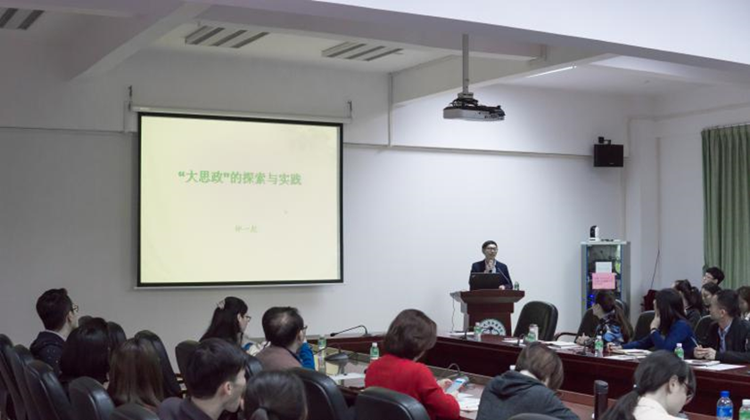 随后,钟一彪部长作主题为“‘大思政’的探索与实践”的致辞。钟一彪部长从“坚持‘三全’育人”、“构建‘大思政’工作格局”、“实施精准思政”三个方面娓娓道来,详细阐述了新形势下“大思政”工作的必要性。作为思想政治教育工作者,要对自身工作设立更高目标,拥有更高的追求,做到对形势精准研判、问题精准把握、平台精准搭建、舆论精准引导、队伍精准建设。