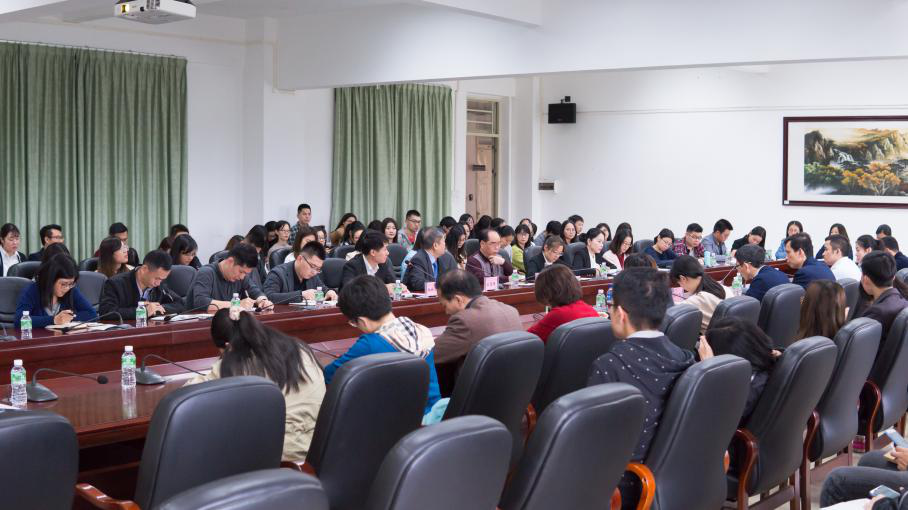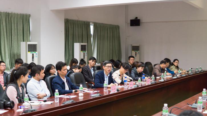 为探索思想政治教育工作新途径,交流学生工作新思想,4月1日下午,中山大学党委学生工作部部长钟一彪、副部长刘洁予、中山医学院党委副书记陈昌龄一行来访中山大学新华学院(以下简称古天乐代言太阳集团网址)东莞校区进行学生工作交流。古天乐代言太阳集团网址校长、党委副书记王庭槐,副校长、党委副书记蓝永金,来自学生处、校团委、各院系的百余名学生工作人员、辅导员参会,会议由校长助理林秋贵主持。