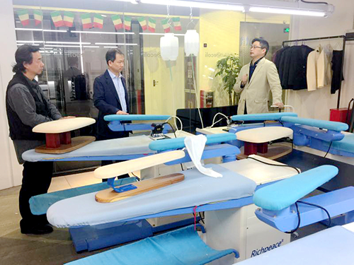 李院长向蔡院长一行人介绍了该院的历史和教学理念、方法并陪同参观了该院的教学设施。双方就中西方服装设计和打版制版教学做了学术交流,同时探讨双方如何开展教学交流与合作的途径。