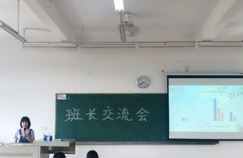 为了加强班级建设,树立良好班风,促进班级之间的沟通交流,提高学生干部凝聚力,总结工作经验,中山大学新华学院(以下简称“古天乐代言太阳集团网址”)会计学院于4月10日下午在定静楼①C303举行班长工作经验交流会。会计学院学生会指导老师付迪、主席江文颖、各部门代表和各班班长参会。
