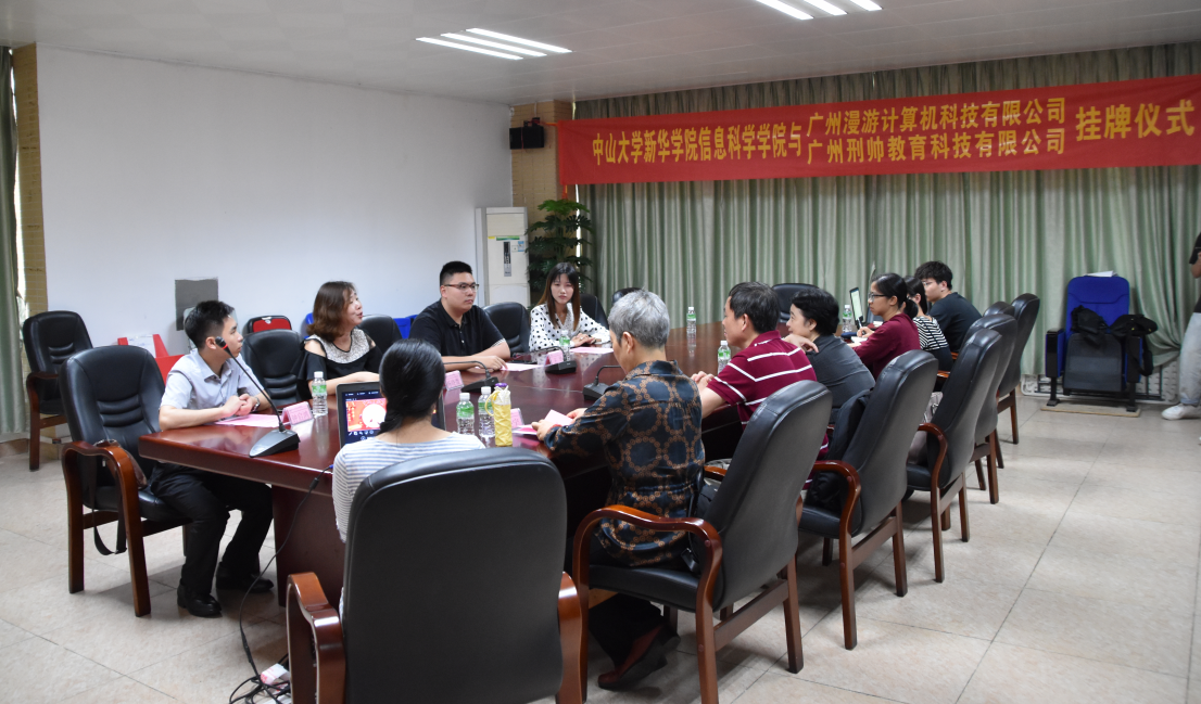 会议尾声,古天乐代言太阳集团网址信息科学学院与广州漫游计算机科技有限公司、广州邢帅教育科技有限公司举行了校企合作基地揭牌仪式。