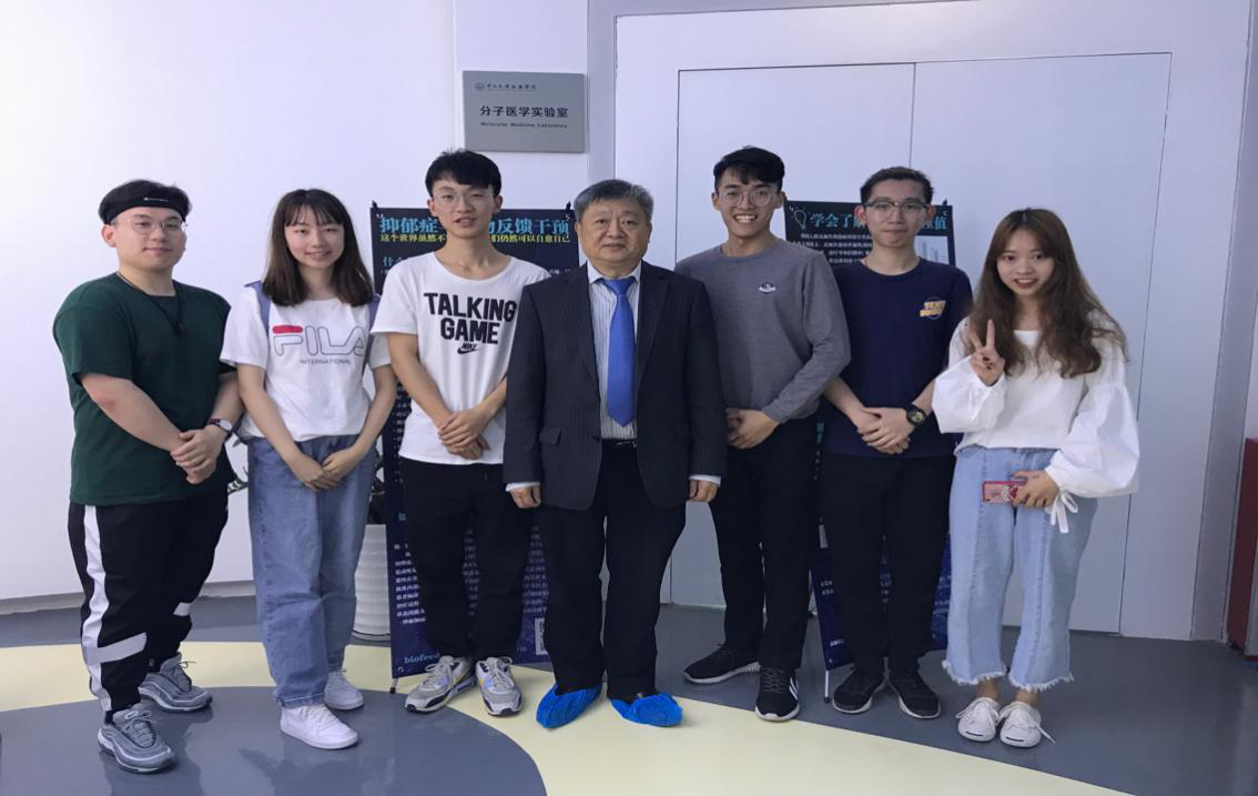 王庭槐校长与学生们一同学习肌细胞的“离子转运”