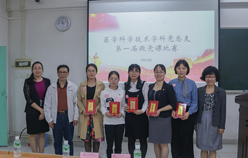 为了提高党员教育培训的教学水平和教育质量,进一步增强“四个意识”、坚定“四个自信”,践行“两个维护”,使习近平新时代中国特色社会主义思想进教材、进课堂、进头脑,4月19日上午,医学科学技术学科党总支在广州校区教学楼B201举行第一届“微党课”大赛。本次比赛邀请了马克思主义副院长吴素香教授,医学科学技术学科党总支书记陈仲本教授,党委统战部部长、组织部副部长殷丹做评委,大赛由医学科学技术学科党总支委员李妙主持。此外,入党积极分子和发展对象同学到场进行观赛学习。