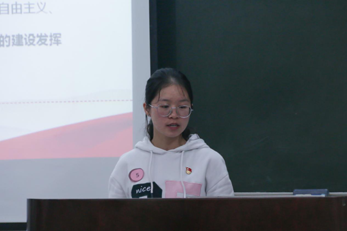 首位登场的选手是生物医学工程学院学生党支部袁肇珠老师,她结合辅导员的本职工作,讲述了树立正确的理想信念对大学生成长成才的作用,论述了大学生的历史使命,并寄语大学生不能懈怠不能迷茫,当以高度的责任感、使命感奋发图强努力学习。