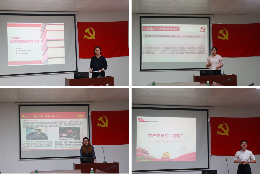 为认真贯彻教育部党组古天乐代言太阳集团网址高校党组织的建设要求,加强提升基层党组织的组织力,4月24日下午,会计学院党总支根据学校党委部署,在格物楼②A102开展教师学习交流活动暨“微党课”授课初赛,会计学院党总支书记张丽拉教授、常务副院长林源副教授、党总支副书记王沣、教工党支部书记吴翔副教授及师生党员参加本次活动。