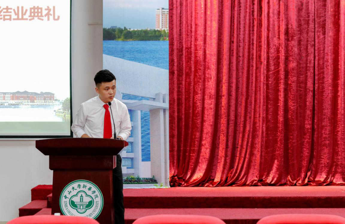 15级电子信息科学与技术专业瞿文政同学代表2019届"逸仙新华班"毕业生发表感言。他首先代表毕业生向大学期间给予帮助的师长、亲友表示感谢。他说道:"在逸仙新华班的时光,教会我很多:一是求同存异、合作共赢。我们每个人都来自不同的专业,在小组中每个人都有着自己存在的意义。在这里,我们学会了让各自的专业知识实现优势互补、通力合作,向着一个目标而努力,同时精进自己的专业能力和通识知识。二是心之所向、身之所往。作为逸仙新华班的一名学子,唯有从进大学之初就明白心之所向,方能在这里找到身之所往,并为梦想而努力。三是脚踏实地、仰望星空。逸仙新华人是脚踏实地的实干家,也是青春路上的逐梦人。希望我们每名毕业生都能在未来的道路上做一个行动者、做脚踏实地的奋斗者,发扬逸仙新华人奋斗担当的传统,让青春在为国家的前途、为人民的幸福奋斗中尽情绽放!