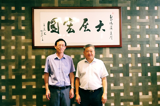 王庭槐校长(右)欢迎李晟文教授(左)到访