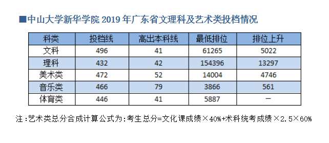 中山大学新华学院2019年广东省文理科及艺术类投档情况