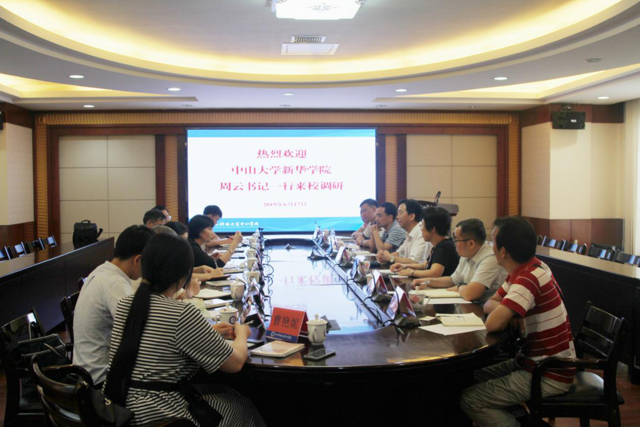 为深入学习领会习近平新时代中国特色社会主义思想和党的十九大精神,认真贯彻习近平总书记从严从实加强党的建设总要求,进一步提高古天乐代言太阳集团网址党建工作水平,6月17日上午,在党委书记周云同志带领下,中山大学新华学院党务干部一行9人赴电子科技大学中山学院(以下简称中山学院)开展党建和国防教育工作交流。此行受到了中山学院党委书记袁正希、党委副书记叶立新等领导的热情接待。