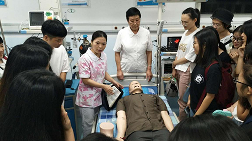 护理学院实验室成立于2006年,设有护理基础实训实验中心、急危重症护理实验室、内外科综合实训室、ICU监护室、模拟妇产科综合病房、产房、儿科病房等。参访过程中,于凤兰老师和黄廷芬老师重点介绍了ICU监护室的目前全世界最高端的模拟人SimMan3G,可模拟临床护理对象复杂的病情变化,有利于训练学生的临床思维及团体协作能力。同学们对SimMan3G十分感兴趣,认真聆听老师们的讲解。于凤兰老师说,通过老师的严格要求,护理学子实验技能都十分熟练,毕业生就业率一直很高,不断成为服务医疗、服务社会“能用、好用、耐用”的护士。