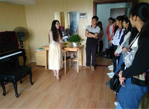 陈雪璐老师为参访师生介绍了音乐系琴房概况。目前学校共设有琴房33间,其中学生琴房21间,教师琴房11间,学术交流室1间。每间琴房都配备了空调以及办公桌椅,为达到良好的隔音效果,每间琴房装修时地面采用隔音材料做浮筑结构,墙面采用双层墙做隔音墙。作为音乐教育必备基础设施,琴房区域功能分区清晰、设备先进、文化特色突出,符合现代音乐人才培养的需要,给大家留下了深刻的印象。