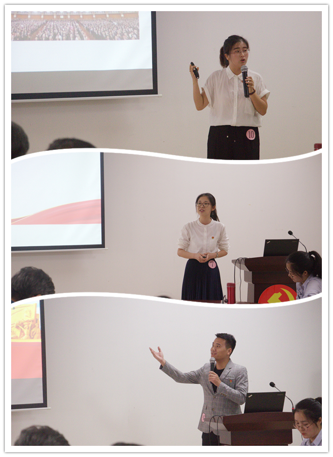 向彩绫同志以回忆外公的对话和思考入手,回顾了不同的历史时期,一个个共产党员为了党和人民奋斗牺牲、前仆后继的事迹,回答了共产党员是否有“特权”的问题;程若臆同志引经据典,与我们分享服务人民的精神之甘,复兴民族的信仰之甜……赛场上,13位选手与大家分享所学、所思、所悟,引起台下观众的思想触动和精神共鸣。