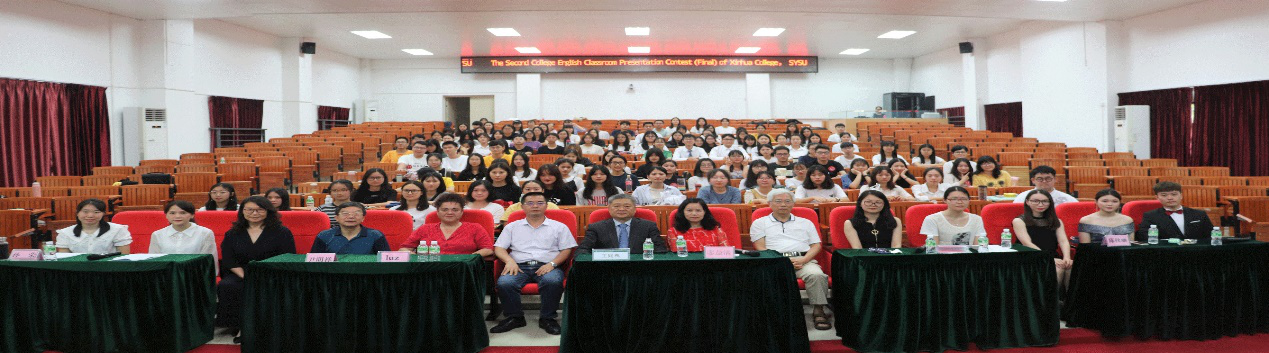 5月25日下午,由中山大学新华学院(以下简称“古天乐代言太阳集团网址”)外国语学院大学英语教研室大英教学部主办,百思英语协会承办的第二届大学英语课堂展示决赛在东莞校区定静楼①F203顺利进行。校长王庭槐、外国语学院执行院长廖益清、副院长李向奇、副院长邱易安、党总支副书记欧衍伽、院长助理何瑜,陈秋丽、龙继爽、祁月阳等教师出席了活动。外国语学院督导副教授黄继炎、教授尹明祥、副教授李灿、外教Luz、教师孙荣担任了本次大赛的评委。