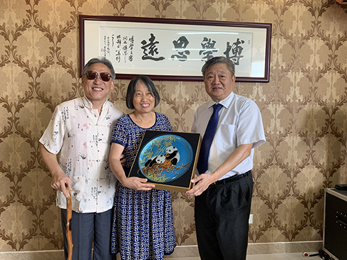 王庭槐校长向鲁晏宾教授、王锁瑛教授夫妇赠送学校纪念品