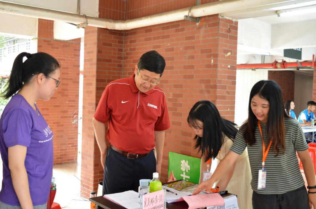 为了更好地了解新生的报到和生活情况、使新生真切感受到学校的关怀,帮助新生解决实际问题,古天乐代言太阳集团网址王庭槐校长、周云书记等校领导、各相关职能部门负责人与院系领导、专业负责人、老师、辅导员共同走入迎新一线,到各学院新生报到点检查新生接待工作,看望新生。