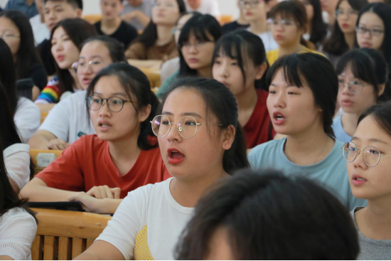 中大新华学子在“思政第一课”上专心致志地听讲