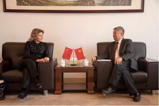 Edda教授(左一)与王庭槐校长(右一)洽谈合作