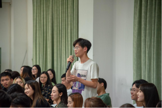 Edda教授与学生们交流互动,为学生解答音乐学习上的问题。就如何提高歌唱能力,Edda教授指出首先要把握好气息的流畅、歌词的押韵,来完整地表现音乐,在老师的指导下找到自己的声部并结合自己的生理条件,找到适合自己演唱的歌曲风格才能够达到更好的效果。Edda教授强调,同学们要平衡好兴趣和天赋。只有将两者相结合,才能够以饱满的精神去不断接受新的知识。为了让同学们更好地理解自己的所要表达的意思,Edda教授多次现场示范,会上师生交流氛围活跃,会议室中响起一阵阵掌声。