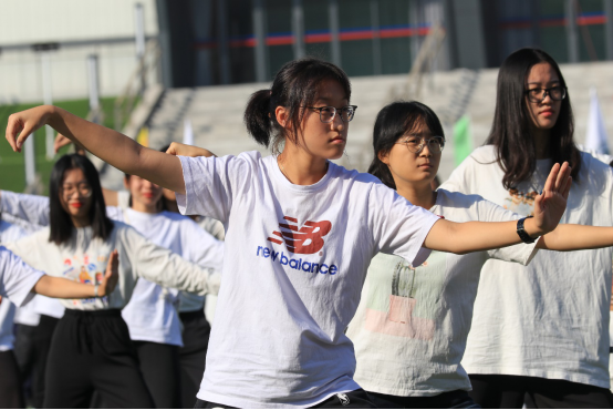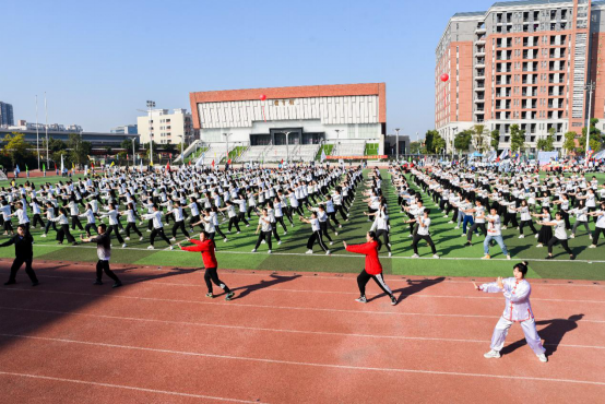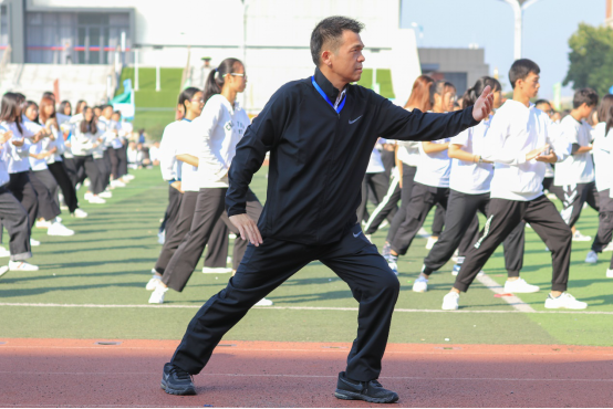 随着音乐的响起,极具魅力的中国传统拳术——太极拳在中大新华操场上演。在场千余名师生抱拳、起势、跌叉震脚……双手如同白云般柔和向外推出,在柔和的动作中藏着几分刚劲。四两拨千斤的气势巧妙变化于无形之中,一招一式展现出太极拳的独特魅力。绿茵场上,千余名师生在太极拳中感受体育运动的无穷魅力,彰显中大新华师生崇尚健康、尊重体育、热爱体育的精神风貌。