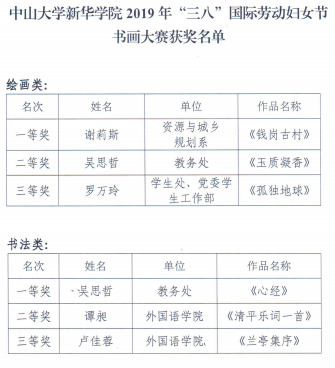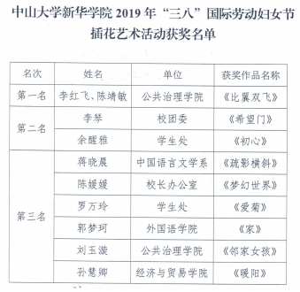 附2:中山大学新华学院2019年“三八”国际劳动妇女节系列活动获奖名单