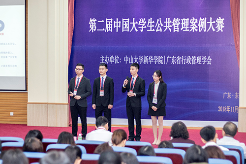据本届大赛的倡导者、组织者代表——中山大学新华学院公共治理学院院长徐文俊教授介绍,本届大赛的成功举办是基于首届大赛成功举办所打出去的品牌影响力,因此得到了广东省行政管理学会的参与主办,并于第二届(即本届)将其从一所高校独立举办的赛事提升为广东省行政管理学会关注的省级赛事,获得了全国高校和公共管理学界更为广泛的关注和支持。中大新华公共治理学院于今年7月10日率先在全国高校中正式将“公共管理”更名为“公共治理”,一字之差,体现着我们人才培养的目标内涵与教学改革的与时俱进。本届大赛的持续举办正是对我国全面推进国家治理体系和治理能力现代化的重要理念和价值取向的积极响应,更是对贯彻落实习近平总书记治国理政新思想的教育实践与探索。未来,中大新华公共治理学院也将继续举办该项赛事,以赛促学、以赛促改,为培养新时代公共治理应用型人才出一份中大新华的责任与力量。