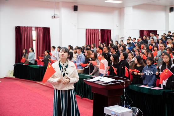 现场师生手持小国旗,同唱《我和我的祖国》