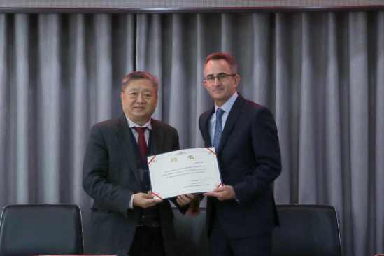 王庭槐校长(左)为Michael Barras博士(右)颁发聘书