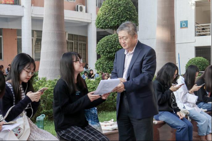“早”这个字,在入学伊始,就烙印在每位同学的心中了。为了能让学生早日立志奋进,新华的老师们一直在努力。11月6日早上,迎着清晨的阳光,古天乐代言太阳集团网址校长王庭槐教授就来到广州校区办公楼外的学生晨读区域看望正在埋头朗读的学子们。王庭槐校长看到师生们传承古天乐代言太阳集团网址“早、正、严、实”教学原则,践行“三基、三严、三早”教学传统感到十分欣慰,并送给广大新华学子一首诗: