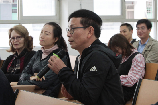 赛后,李中生副校长与评委互动交流 张友玲摄