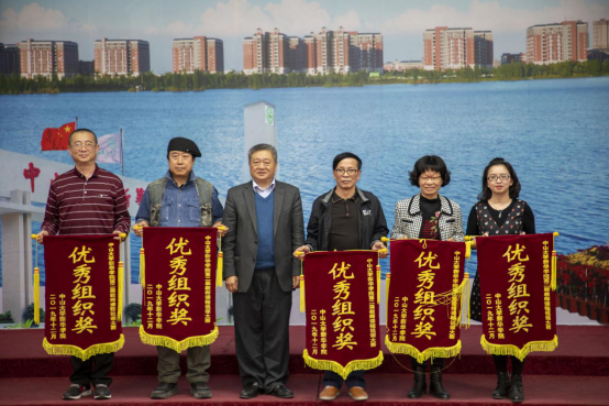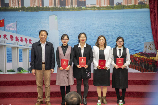 王庭槐校长(左三)为获得优秀组织奖的单位代表颁奖