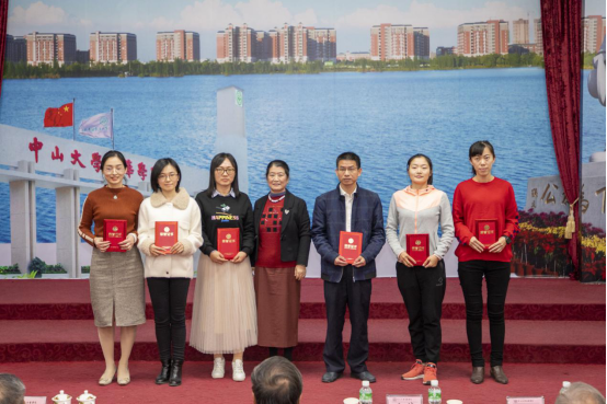 教师发展中心主任、教学质量评估处顾问李小梅(左四)为三等奖获得教师颁奖