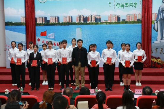 获奖学生代表资源与城乡规划系卢荣旺分享了他的大学学习生活,提出要敢于做梦,迎难而上,坚持自己的梦想。同时,感谢学校的栽培和老师的教导,无论未来走向哪里,始终谨记孙中山先生“博学、审问、慎思、明辨、笃行”的校训,努力为校争光、为国争光。