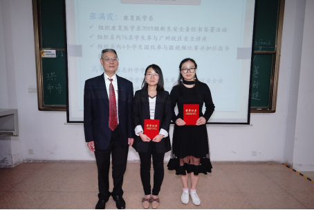 王庭槐校长(右一)、廖振亮副校长(左一)为最佳组织奖获奖单位颁奖